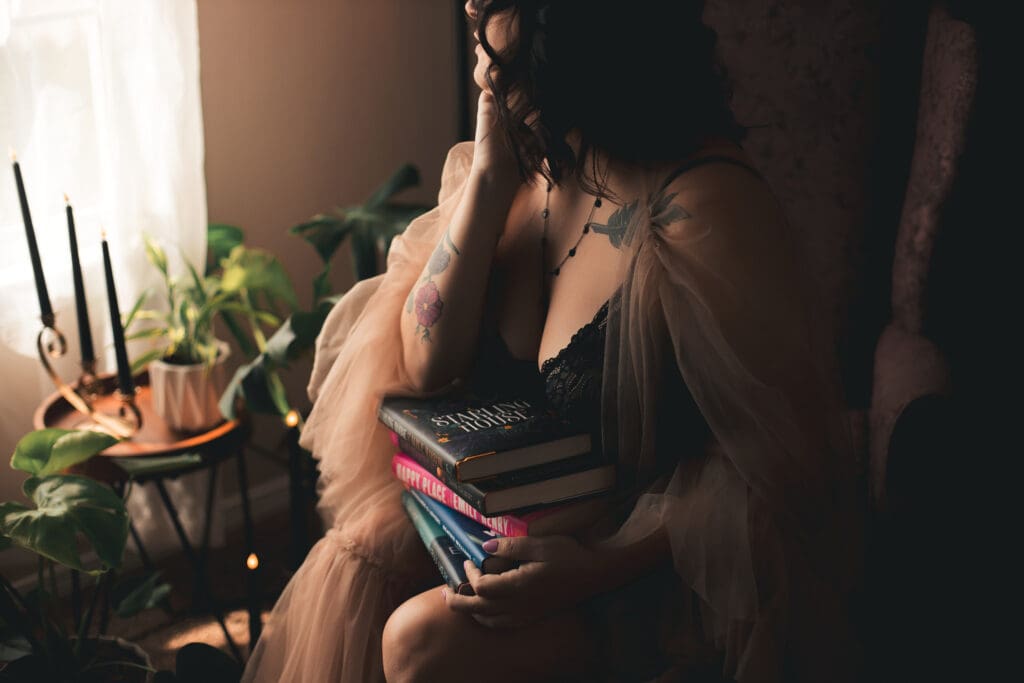If you’re thinking about booking a session in my Springfield Missouri Boudoir studio, don’t forget to bring your booktok books! It’s such a fun way to add a personal touch to your session. Plus, those are some pretty spicy books. It adds a perfect amount of spice to a session too!